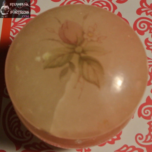 BOX JEWELRY SMALL VINTAGE PINK ALABASTER GEMSTONE ROSE TOP ITALY COINS CREAMS
