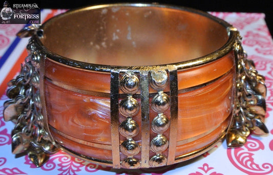 BRACELET BANGLE VINTAGE ORANGE ENAMEL GOLD BELLS INDIAN BELLY DANCER