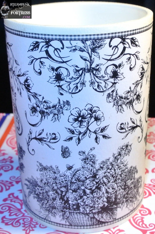 CUP VINTAGE BLACK WHITE TOILE LADY JAYNE 2002 PEN HOLDER HOME DECOR