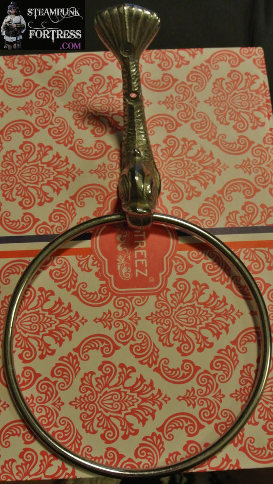 VINTAGE KOI FISH CHROME SILVER TOWEL HOLDER ASIAN THEME HOME DECOR CAST IRON MAYBE