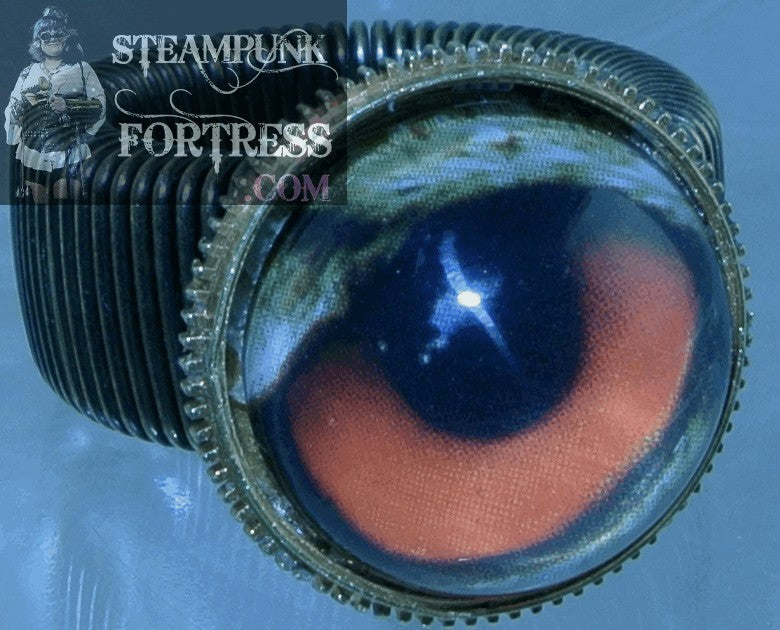 THIS IS A FABULOUS HANDMADE CUSTOM MADE STEAMPUNK DIESELPUNK CYBERPUNK, MEDIEVAL, RENAISSANCE, VICTORIAN, EDWARDIAN, COSPLAY COSTUME COMIC CON…BRASS STRETCH SPRING RING….IN BRASS GENUINE WATCH CLOCK CASE....OWL EYE.......#663