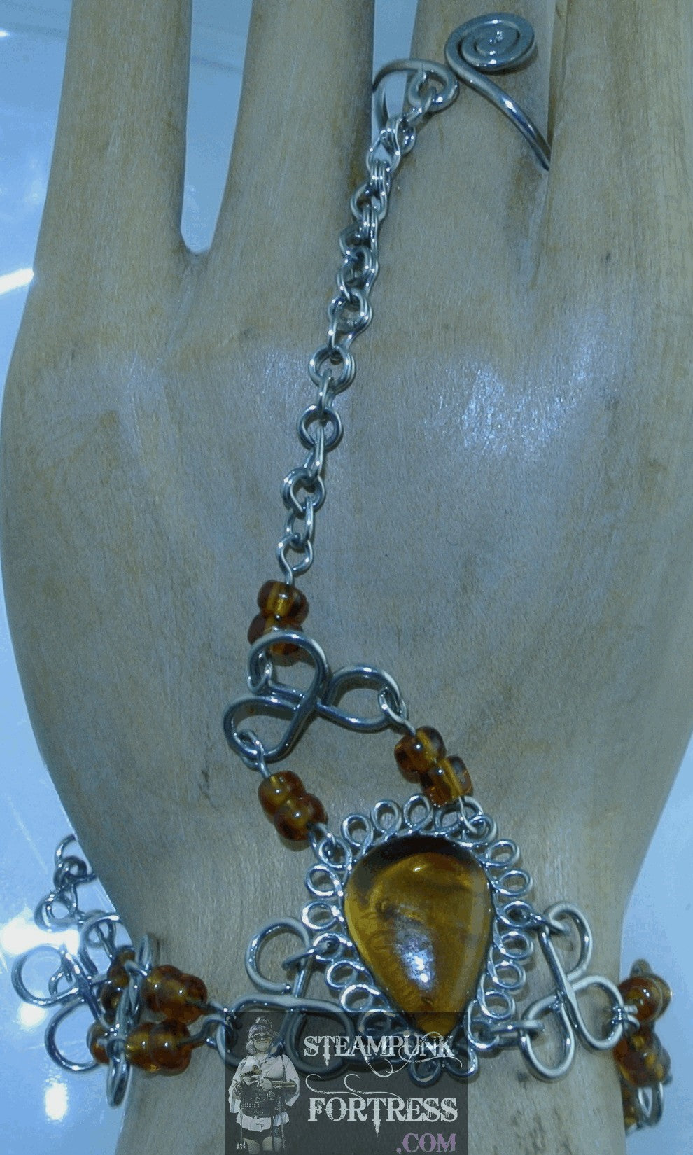SILVER SLAVE BRACELET YELLOW GLASS CENTER ADJUSTABLE RING BRACELET STARR WILDE STEAMPUNK FORTRESS