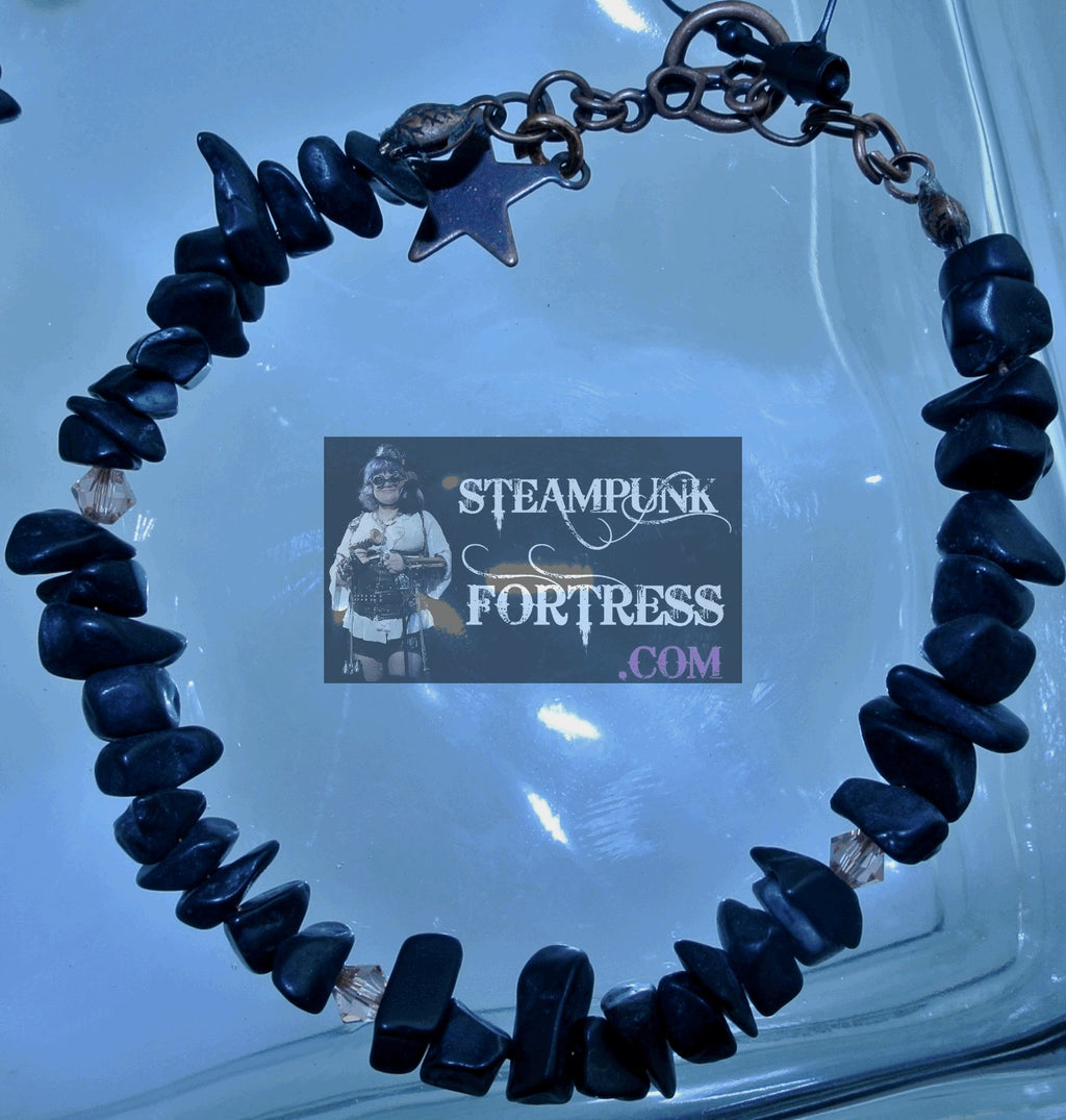 COPPER BLACKSTONE GEMSTONES STONES CHIPS PEACH SWAROVSKI CRYSTALS BRACELET SET AVAILABLE STARR WILDE STEAMPUNK FORTRESS