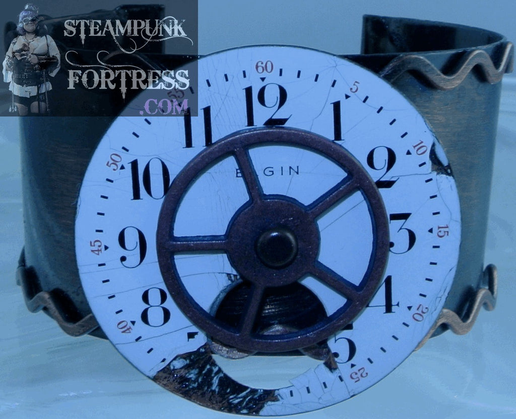 COPPER CUFF ELGIN PORCELAIN WATCH CLOCK FACE DIAL 5 ARM COPPER GEAR BRACELET STARR WILDE STEAMPUNK FORTRESS