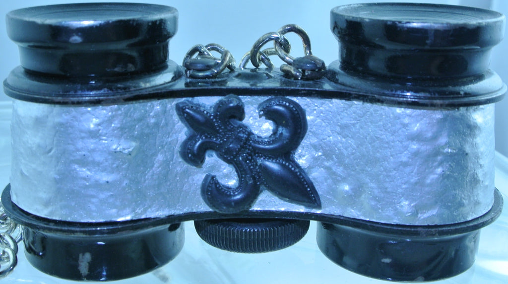 VINTAGE IRON PAINTED SPORTIERE JOCKEY CLUB SILVER TRIM BINOCULARS FIELD GLASSES HEAVY CHAIN STRAP CLASP STARR WILDE STEAMPUNK FORTRESS