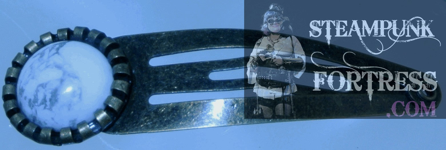 BARRETTE BRASS HOWLITE WHITE GEMSTONE FOLDED EDGE HAIR CLIP STARR WILDE STEAMPUNK FORTRESS