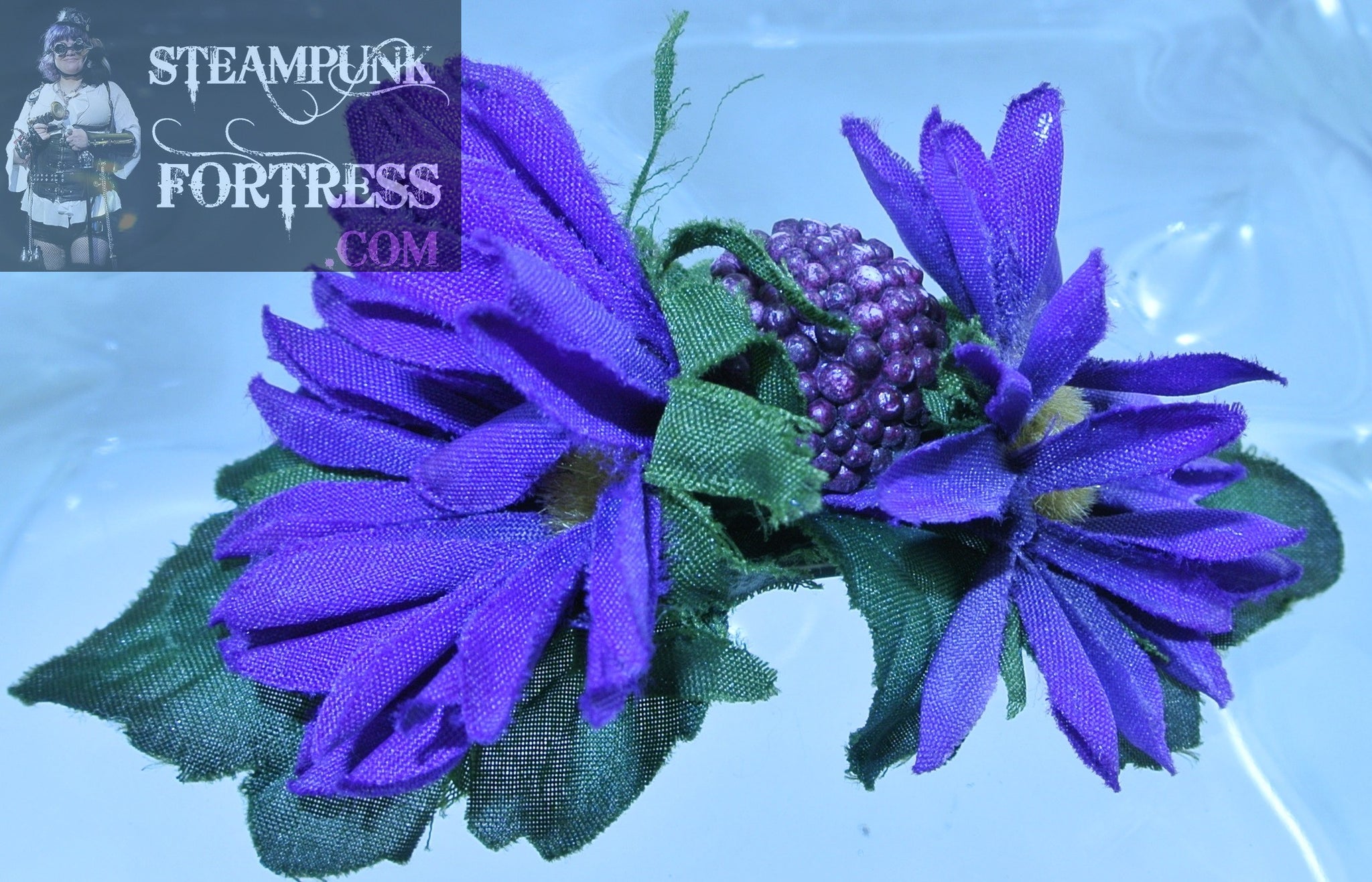 BARRETTE SILVER 2 PURPLE FLOWERS 1 BERRY WORN AGED STEAMPUNK BARRETTE HAIR CLIP STARR WILDE STEAMPUNK FORTRESS