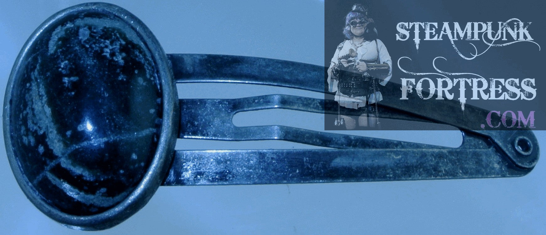 BARRETTE SILVER SERPENTINE GEMSTONE STONE OVAL HAIR CLIP STARR WILDE STEAMPUNK FORTRESS