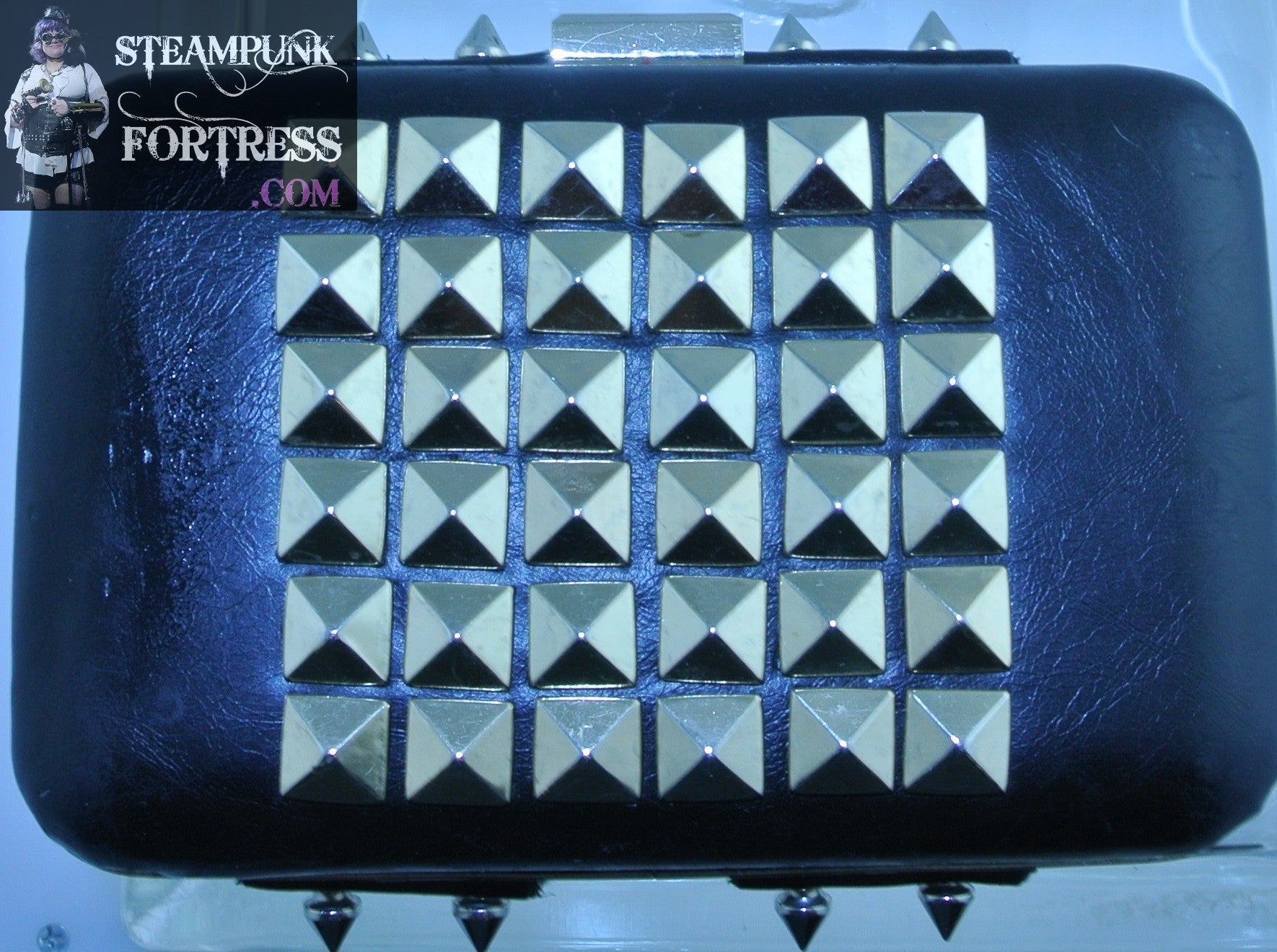 PURSE CLUTCH BLACK SILVER STUDS BELT SLIDE BAG STARR WILDE STEAMPUNK FORTRESS