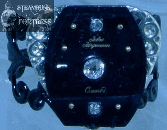 BLACK JULES JURGENSEN AUTHENTIC GENUINE WATCH CLOCK DIAL FACE CLEAR SWAROVSKI CRYSTAL SILVER FILIGREE HEART ADJUSTABLE RING STARR WILDE STEAMPUNK FORTRESS