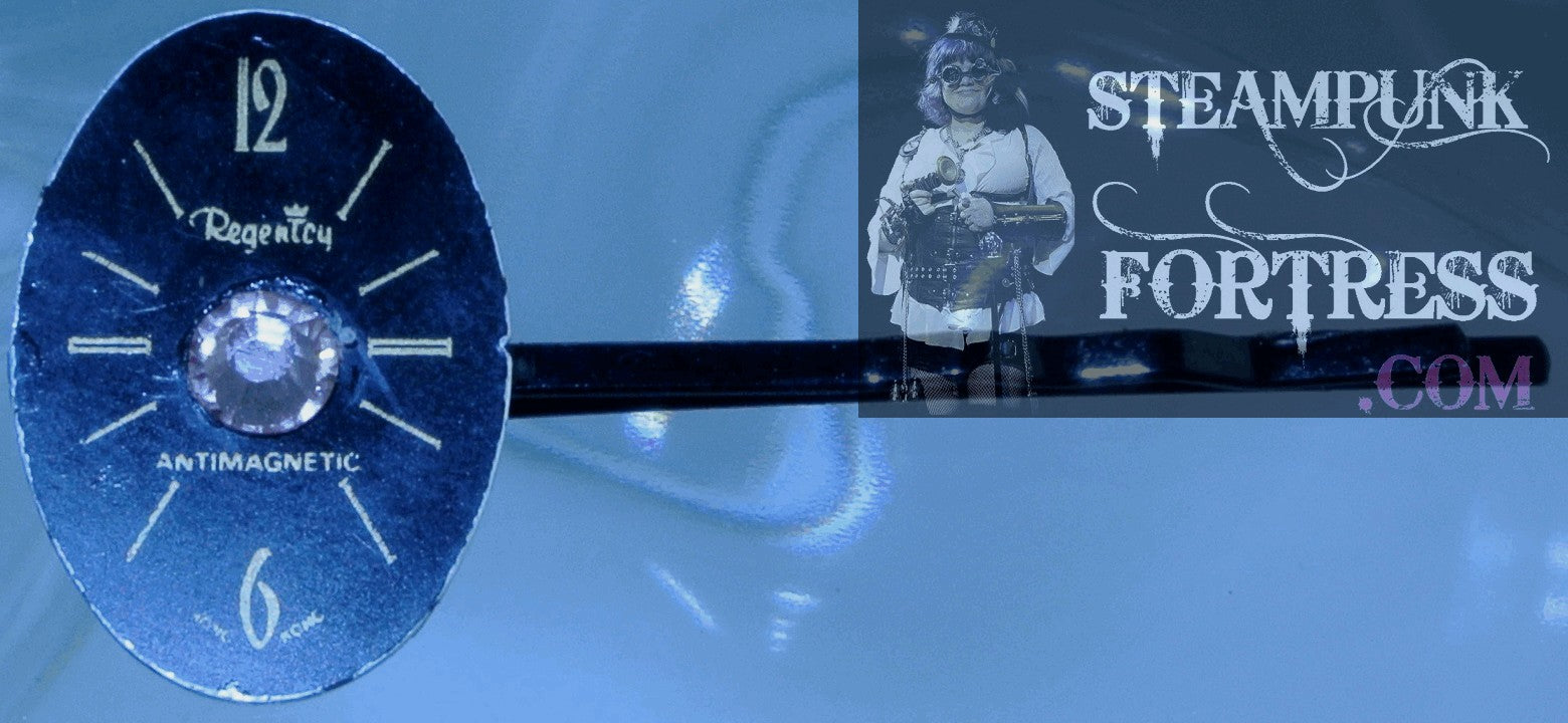 BOBBY PIN BLACK CLOCK FACE WATCH DIAL REGENCY OVAL PINK SWAROVSKI CRYSTAL BOBBBY PIN STARR WILDE STEAMPUNK FORTRESS