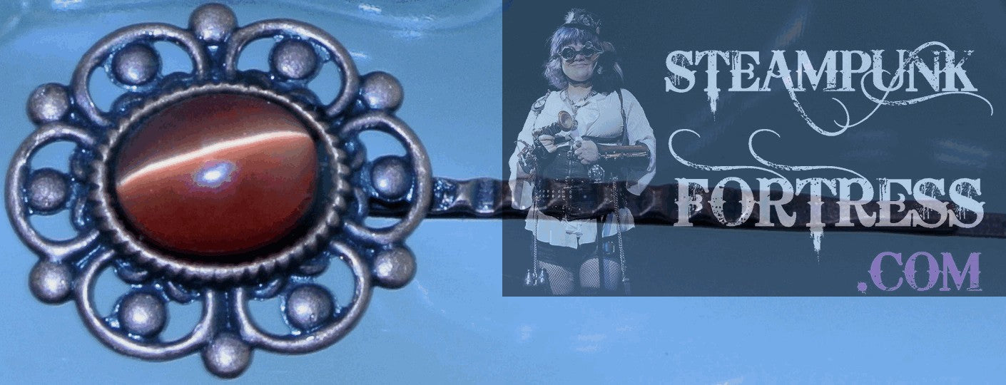 BOBBY PIN COPPER CATS EYE ORANGE GEMSTONE STONE STARR WILDE STEAMPUNK FORTRESS