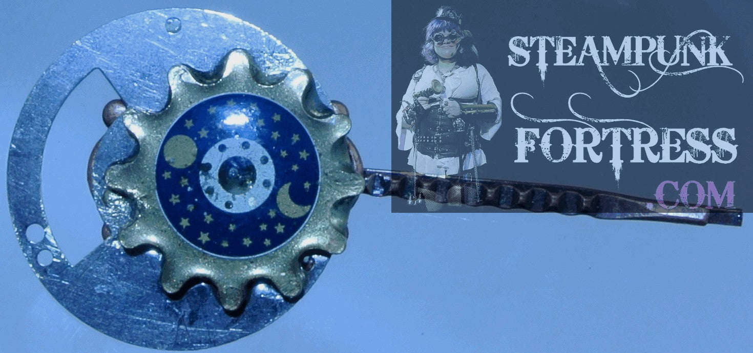 BOBBY PIN COPPER SILVER BACKING AUTHENTIC GENUINE WATCH CLOCK BRASS GEAR SUN MOON DIAL STARR WILDE STEAMPUNK FORTRESS