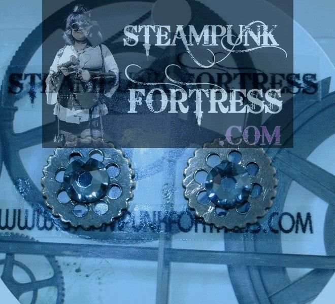 THIS IS A FABULOUS HANDMADE CUSTOM MADE STEAMPUNK DIESELPUNK CYBERPUNK, MEDIEVAL, RENAISSANCE, VICTORIAN, RENAISSANCE, EDWARDIAN, COSPLAY, COSTUME, SDCC, COMIC CON…..PIERCED EARRINGS...BRASS....1 ROUND GEAR AND 1 7MM SILVER NIGHT SWAROVSKI CRYSTAL ON EACH STUD.......#5054