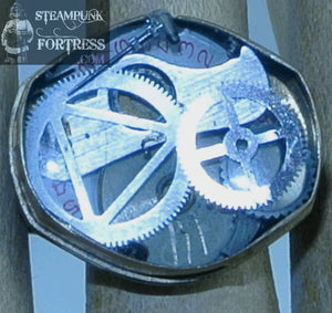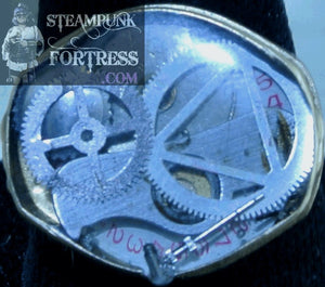 BRASS HEX WATCH CLOCK CASE CLOCK AUTHENTIC GENUINE SILVER GEARS RED DATE WHEEL ADJUSTABLE RING STARR WILDE STEAMPUNK FORTRESS