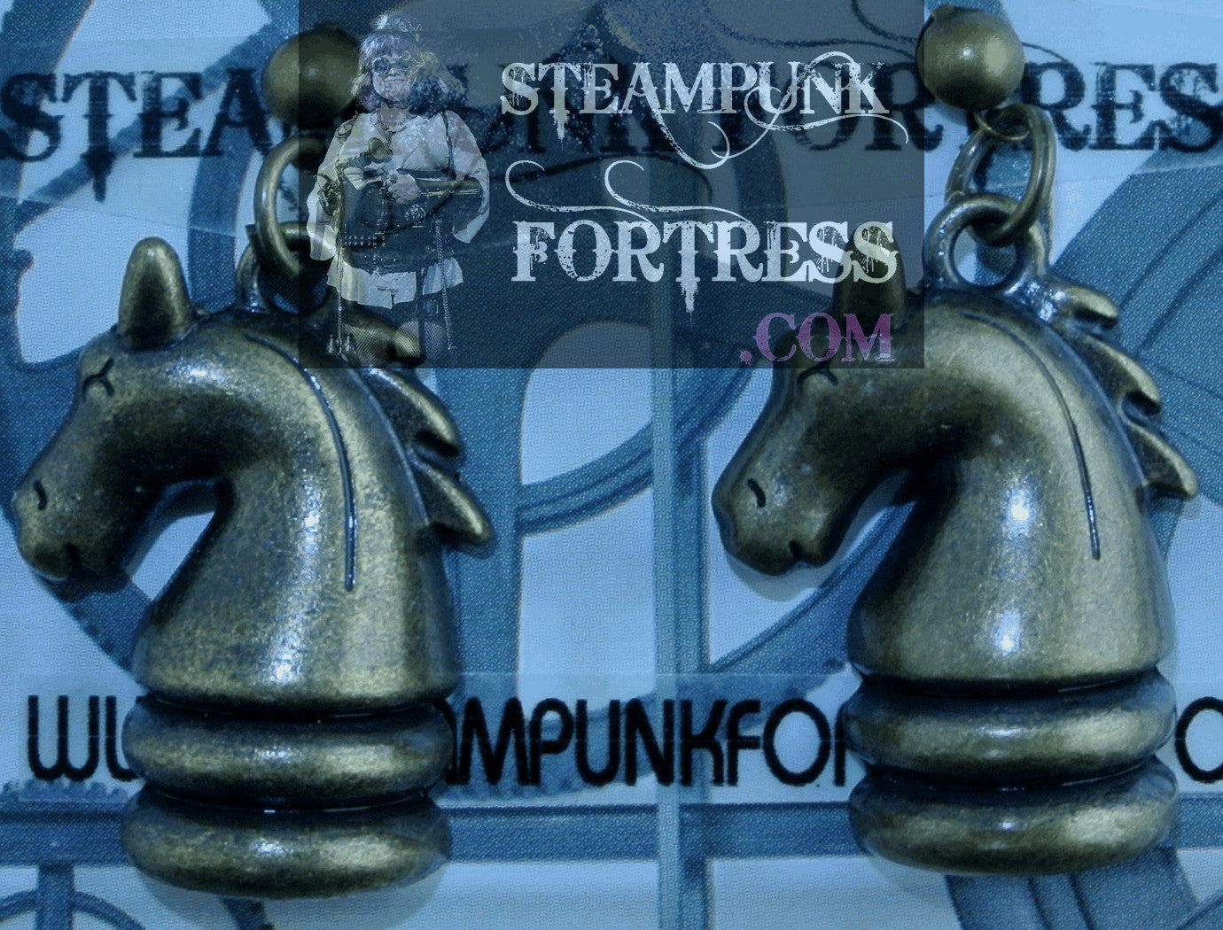 BRASS HORSES CHESS PIECES KNIGHTS STUDS PIERCED EARRINGS STARR WILDE STEAMPUNKFORTRESS