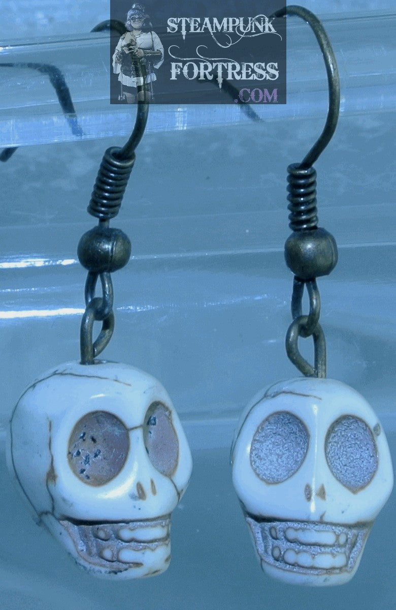 BRASS SKULLS HOWLITE GEMSTONE PIRATE HALLOWEEN PIERCED EARRINGS STARR WILDE STEAMPUNK FORTRESS