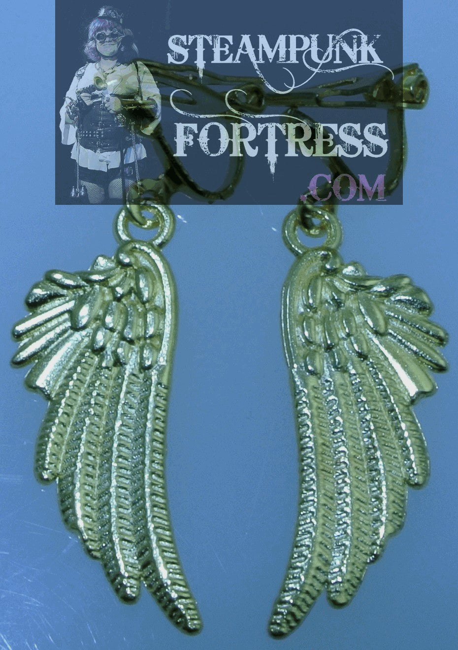 CLIPS GOLD WINGS CLIP ON EARRINGS STARR WILDE STEAMPUNK FORTRESS