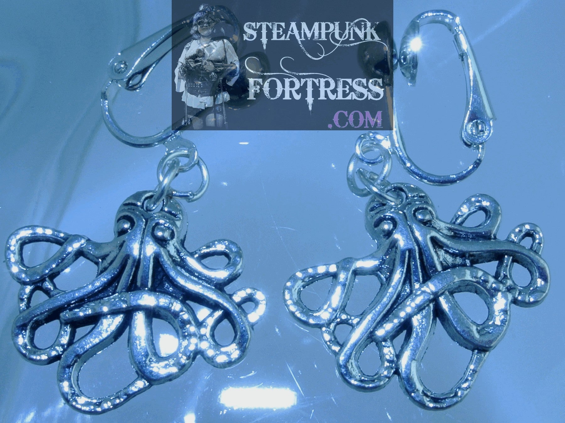 THIS IS A FABULOUS HANDMADE CUSTOM MADE STEAMPUNK DIESELPUNK CYBERPUNK, MEDIEVAL, RENAISSANCE, VICTORIAN, RENAISSANCE, EDWARDIAN, COSPLAY, COSTUME, SDCC, COMIC CON…..CLIPS EARRINGS.....SILVER TONE....1 SILVER TONE MEDIUM OCTOPUS ON EACH CLIP.......#1016