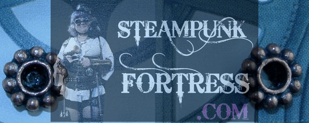 Bags & Purses; Barrettes & Hair combs, Hair Tiaras; Binoculars/Opera Glasses; BTS merchandise- Photocards, custom jewelry etc; Canes- including telescope canes and ones that break down; Clocks; Crossbows-Wrist Gauntlets; Fans; Garters-Arm & Leg for Men and Women; Gauntlets & Bracers (including Vegan options); Gloves; Goggles & Glasses; Hats & Helmets; Home Decor- including Christmas Ornaments & Wreaths; Jewelry- Bracelets, Cufflinks, Earrings- Clips & Pierced, Necklaces, Pins/Brooches, Rings, Tie Tacks & More; Masks; Parasols; Pocketwatches; Purses; Ray Guns; Skirt Lifters; Stockings/Thigh Highs; Tea Dueling Supplies (including Vegan options); Top Hats- Mini & Full; Umbrellas; Vintage Ladies Jewelry Collection- Performers from the Belle Epoque photos into jewelry; Watches; Weaponry-Knives & Swords (Real and Replica); Wings and More. Starr can also repair your precious jewelry, restring pearls, change pierced earrings to clip earrings or clip earrings to pierced earrings. She can also work with you to design a custom piece of jewelry or hat, or weapons etc. She can also customize any piece we have in stock such as adding a veil to a hat, etc. Call or e-mail to make an appointment. Visit our store: Steampunk Fortress.