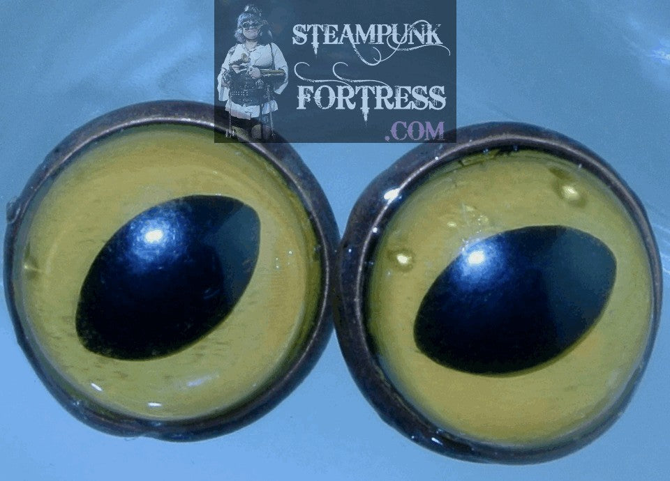 COPPER EYE YELLOW CATS EYE PUPIL DRAGON LIZARD STUDS PIERCED EARRINGS TEARS CRYING HALLOWEEN STARR WILDE STEAMPUNK FORTRESS