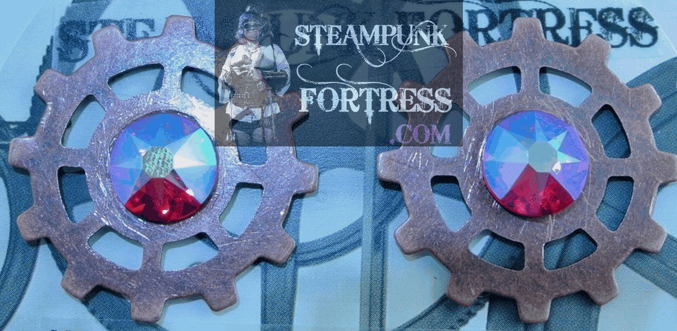 THIS IS A FABULOUS HANDMADE CUSTOM MADE STEAMPUNK DIESELPUNK CYBERPUNK, MEDIEVAL, RENAISSANCE, VICTORIAN, RENAISSANCE, EDWARDIAN, COSPLAY, COSTUME, SDCC, COMIC CON….. PIERCED EARRINGS......1 COPPER SPOKE GEAR AND 1 8MM LIGHT SIAM RED SWAROVSKI CRYSTAL ON EACH STUD.......#5454