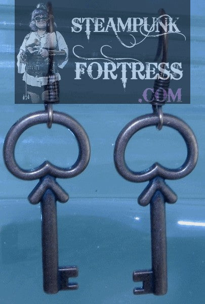 THIS IS A FABULOUS HANDMADE CUSTOM MADE STEAMPUNK DIESELPUNK CYBERPUNK, MEDIEVAL, RENAISSANCE, VICTORIAN, RENAISSANCE, EDWARDIAN, COSPLAY, COSTUME, SDCC, COMIC CON…..PIERCED EARRINGS...ANTIQUE COPPER...1 COPPER PLAIN ROUND TOP KEY ON EACH HOOK.......#3862