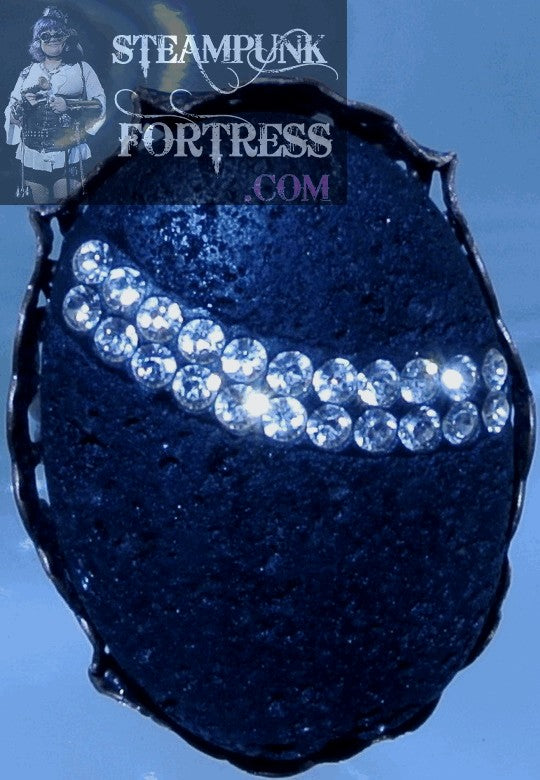 COPPER LAVA ROCK OVAL CLEAR SWAROVSKI CRYSTALS FILIGREE ADJUSTABLE RING STARR WILDE STEAMPUNK FORTRESS