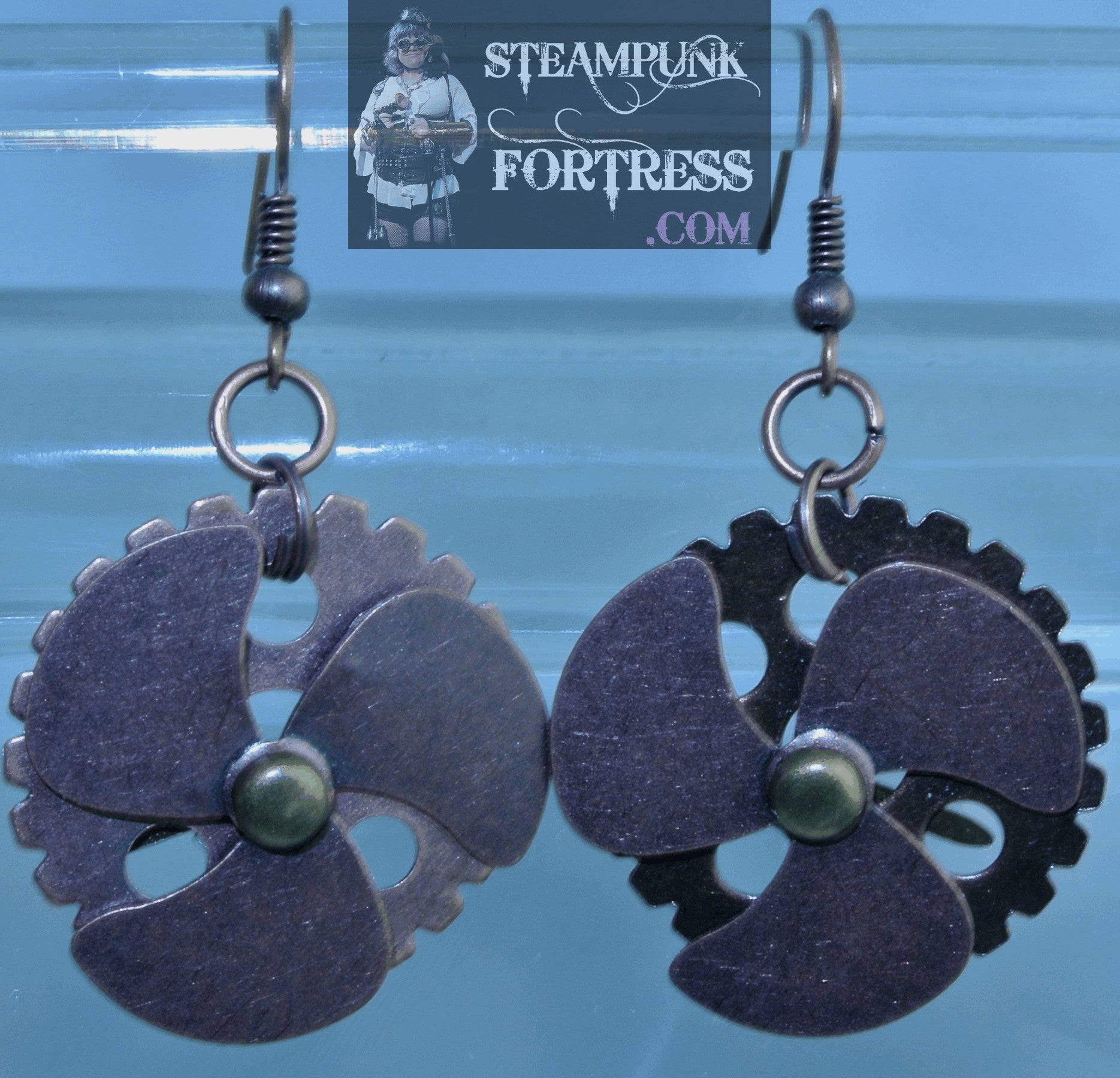 COPPER PROPELLER ROUND GEAR WATCH CLOCK KINETIC SPINS SPINNING BRASS CENTER PIERCED EARRINGS STARR WILDE STEAMPUNK FORTRESS