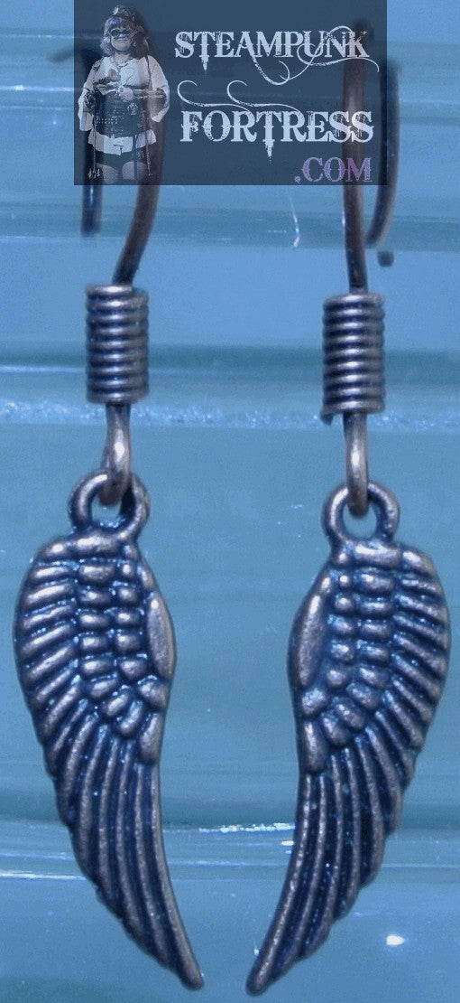 THIS IS A FABULOUS HANDMADE CUSTOM MADE STEAMPUNK DIESELPUNK CYBERPUNK, MEDIEVAL, RENAISSANCE, VICTORIAN, RENAISSANCE, EDWARDIAN, COSPLAY, COSTUME, SDCC, COMIC CON…..PIERCED EARRINGS....COPPER.....1 SMALL WING ON EACH HOOK.........#2331