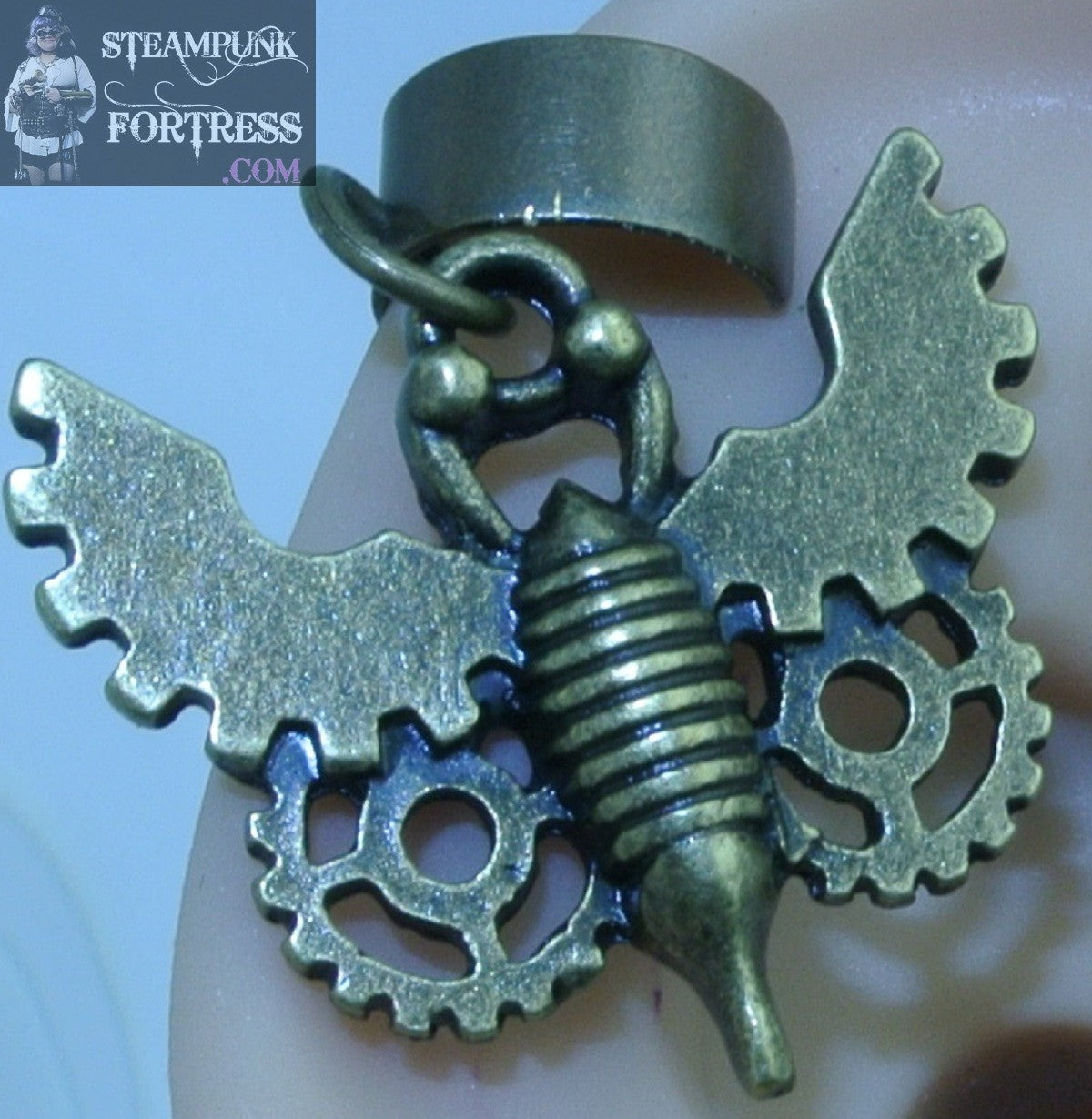 CUFF BRASS BEE GEARS WATCH CLOCK EAR CUFF INSECT DRAGONFLY DRAGONFLIES NON PIERCED NON PIERCING STARR WILDE STEAMPUNK FORTRESS