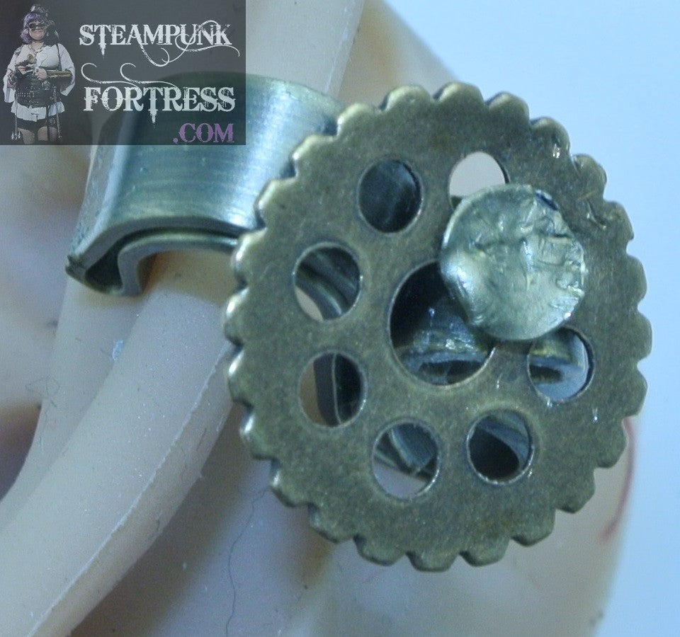 CUFF BRASS GEAR WATCH CLOCK ON BRAD DOUBLE SWIRL BRASS EAR CUFF NON PIERCED NON PIERCING STARR WILDE STEAMPUNK FORTRESS