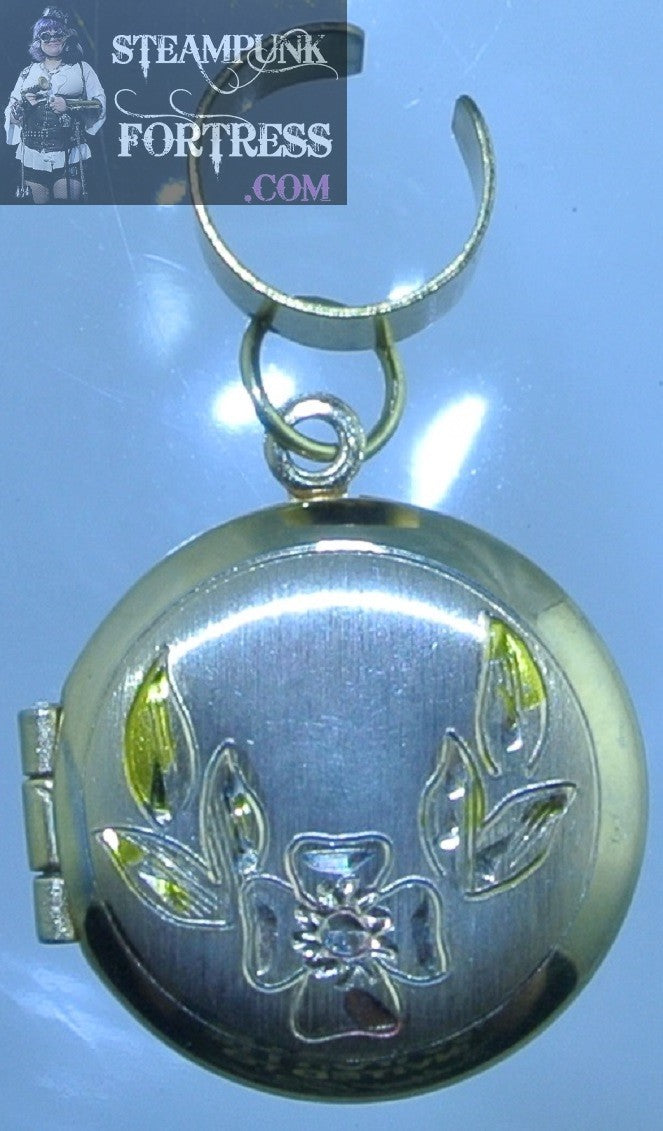 CUFF GOLD LOCKET ROUND FLOWERS VINTAGE SIGNED EAR CUFF ETCHED ENAMEL NON PIERCED NON PIERCING STARR WILDE STEAMPUNK FORTRESS