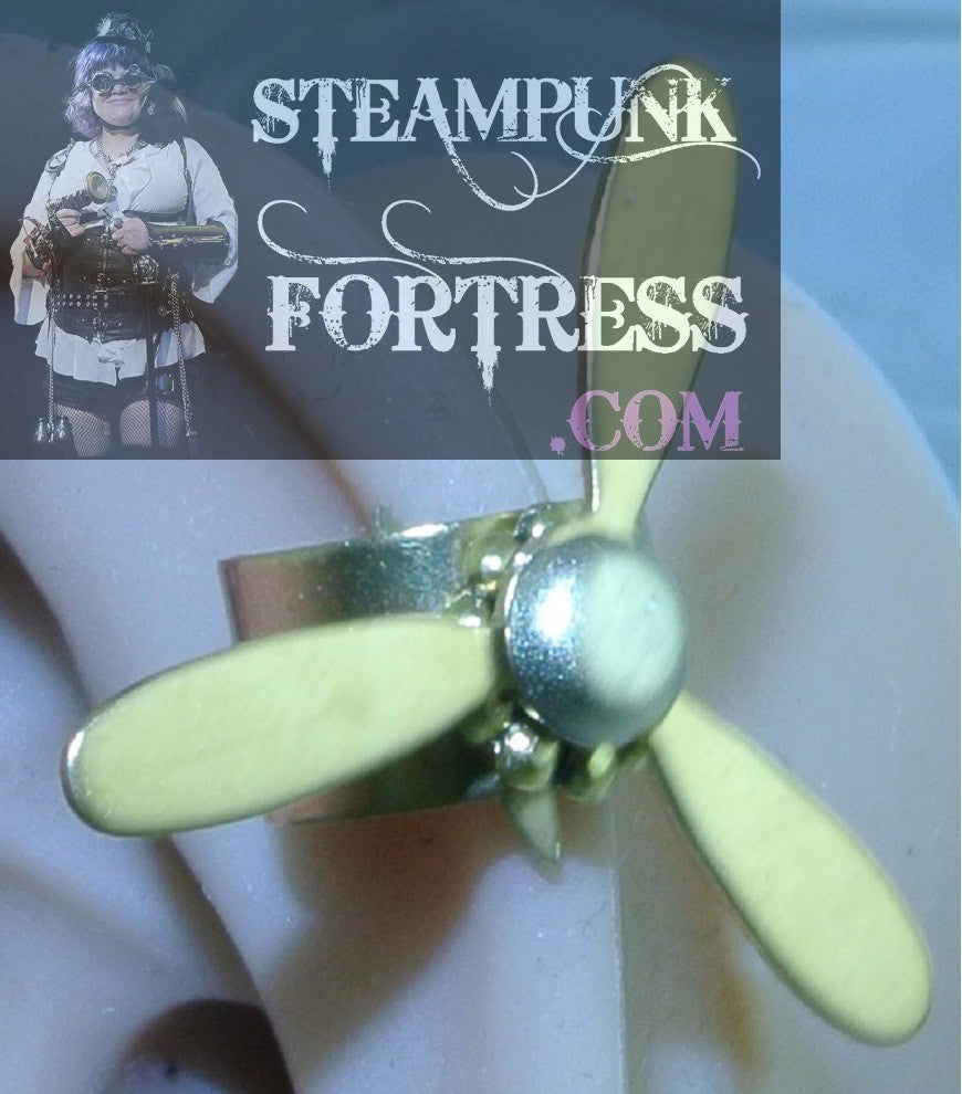 CUFF GOLD PROPELLER 3 ARM KINETIC SPINNING SPINS EAR CUFF NON PIERCED NON PIERCING STARR WILDE STEAMPUNK FORTRESS