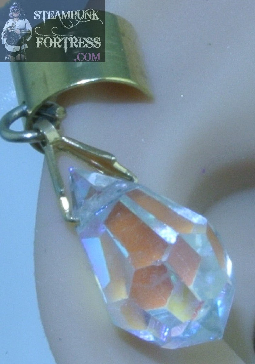 CUFF GOLD TEARDROP CLEAR AB AURORA BOREALIS SWAROVSKI FACETED CRYSTAL DROP EAR CUFF NON PIERCED NON PIERCING STARR WILDE STEAMPUNK FORTRESS
