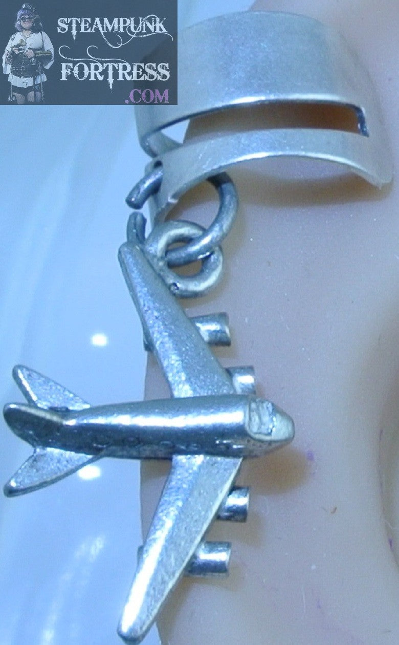 THIS IS A FABULOUS HANDMADE CUSTOM MADE STEAMPUNK DIESELPUNK CYBERPUNK, MEDIEVAL, RENAISSANCE, VICTORIAN, RENAISSANCE, EDWARDIAN, COSPLAY, COSTUME, SDCC, COMIC CON…..EAR CUFF HANGER EARRING...SILVER SPLIT BASE AND 1 AIRPLANE...#159