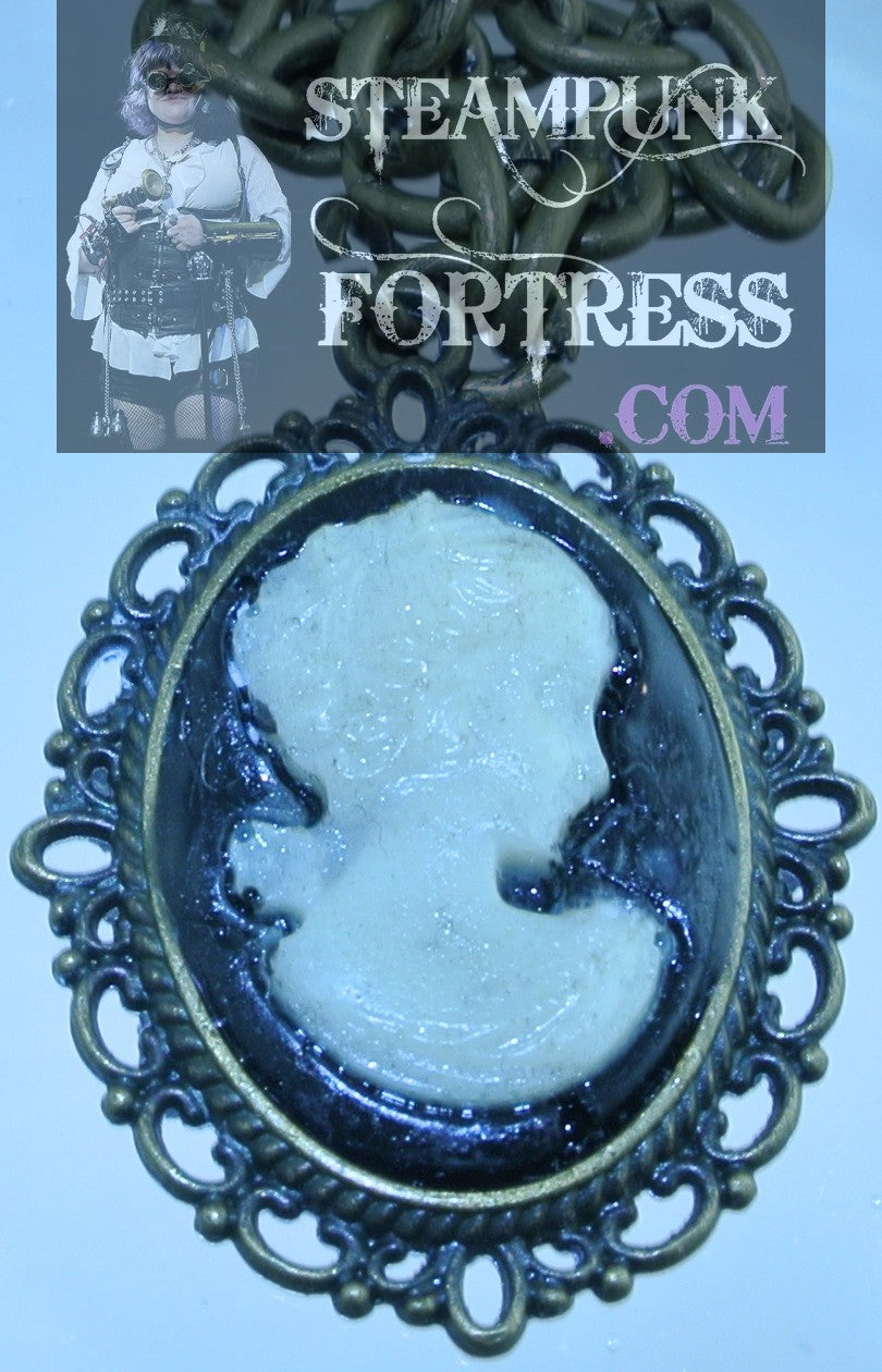 GLOW IN THE DARK BRASS CAMEO VICTORIAN LADY NECKLACE HALLOWEEN STARR WILDE STEAMPUNK FORTRESS