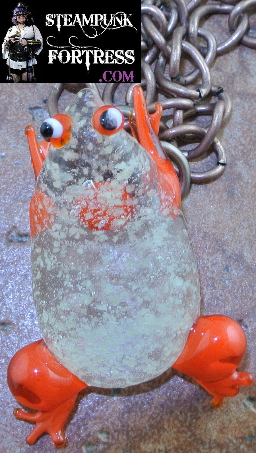 GLOW IN THE DARK RED GLASS FROG COPPER CHAIN NECKLACE STARR WILDE STEAMPUNK FORTRESS