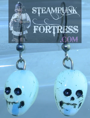 GLOW IN THE DARK SILVER UV SKULLS PIRATE HALLOWEEN PIERCED EARRINGS STARR WILDE STEAMPUNK FORTRESS