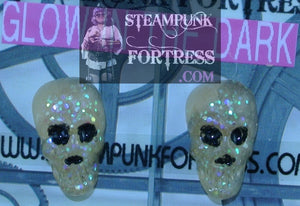GLOW IN THE DARK SKULL GLITTER PIRATE HALLOWEEN BLACK EYES PIERCED EARRINGS STARR WILDE STEAMPUNK FORTRESS