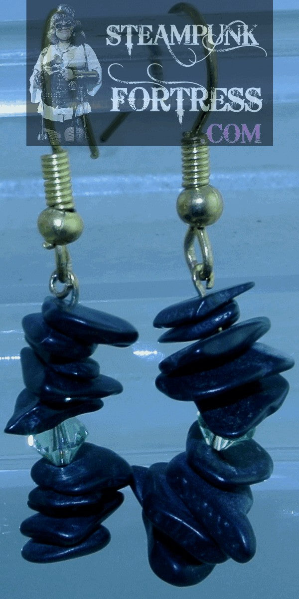 THIS IS A FABULOUS HANDMADE CUSTOM MADE STEAMPUNK DIESELPUNK CYBERPUNK, MEDIEVAL, RENAISSANCE, VICTORIAN, RENAISSANCE, EDWARDIAN, COSPLAY COSTUME COMIC CON….PIERCED EARRINGS...GOLD TONE...10 BLACKSTONE GEMSTONE CHIPS 1 GREEN SWAROVSKI CRYSTAL ON EACH HOOK....#4436