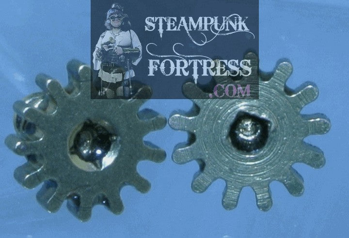BRASS GEARS BRASS 10MM SMALL SQUARE CENTER 13 ARM STUDS WATCH CLOCK GENUINE AUTHENTIC REAL PIERCED EARRINGS STARR WILDE STEAMPUNK FORTRESS