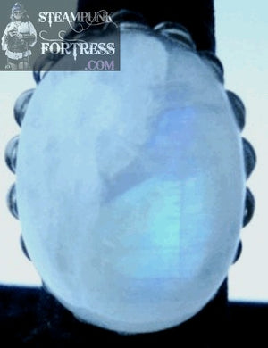 GUNMETAL MOONSTONE GEMSTONES STONE LACE EDGE 18MM X 25MM ADJUSTABLE RING STARR WILDE STEAMPUNK FORTRESS