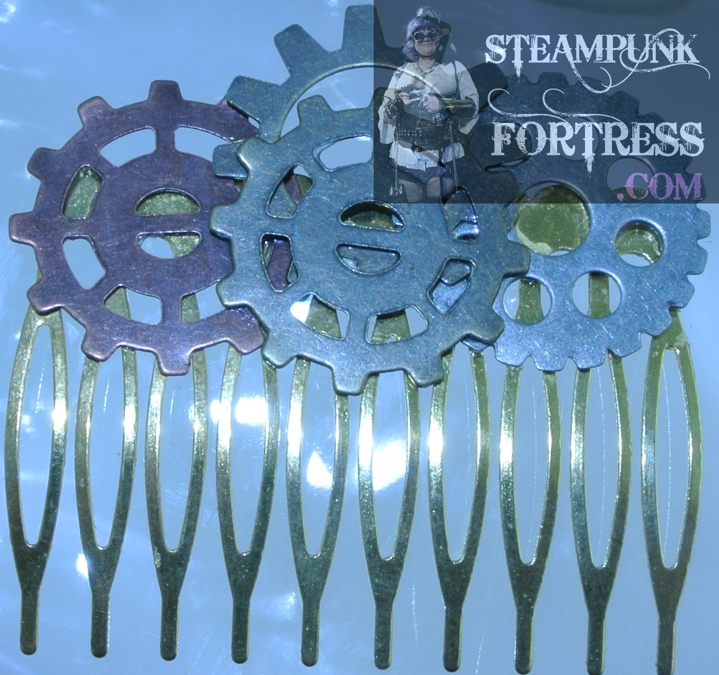HAIR COMB GOLD GEARS 4 STACKED WATCH CLOCK STARR WILDE STEAMPUNK FORTRESS
