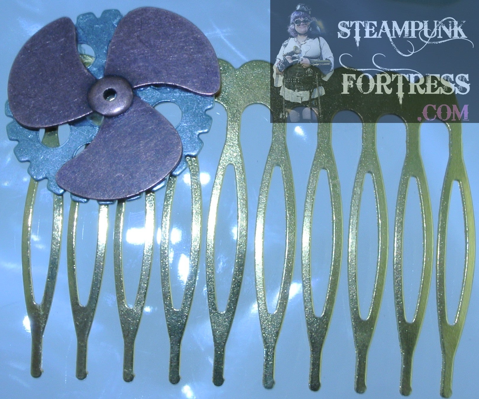 THIS IS A FABULOUS HANDMADE CUSTOM MADE STEAMPUNK DIESELPUNK CYBERPUNK, MEDIEVAL, RENAISSANCE, VICTORIAN, RENAISSANCE, EDWARDIAN, COSPLAY COSTUME COMIC CON HAIR ACCESSORY.…….GOLD HAIR COMB....SILVER GEAR AND COPPER AIRPLANE PROPELLER...#1831