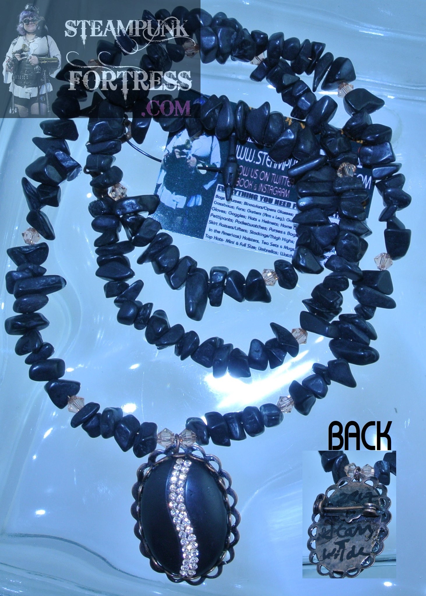 PIN BROOCH COPPER BRIGHT BLACKSTONE GEMSTONES STONES CHIPS PEACH SWAROVSKI CRYSTALS NECKLACE SET AVAILABLE VERSATILE MULTI USE STARR WILDE STEAMPUNK FORTRESS