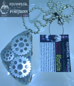 SILVER AMETHYST SLAB GEMSTONE STONE 3 SILVER ROUND GEARS NECKLACE 2 SIDED REVERSIBLE STARR WILDE STEAMPUNK FORTRESS