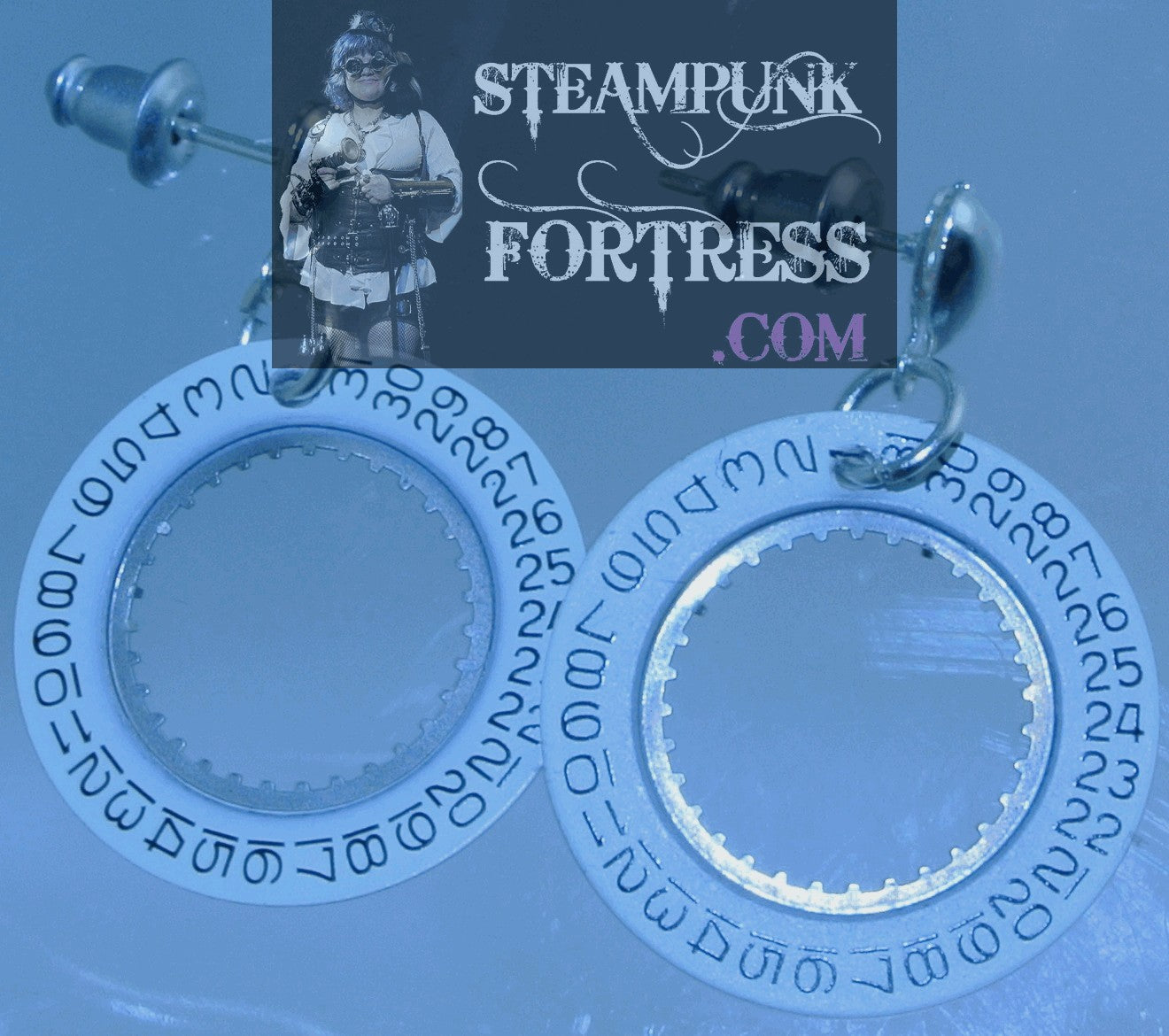 SILVER DATE DIAL SILVER HEART STUDS PIERCED EARRINGS AUTHENTIC GENUINE WATCH CLOCK FACE STARR WILDE STEAMPUNK FORTRESS