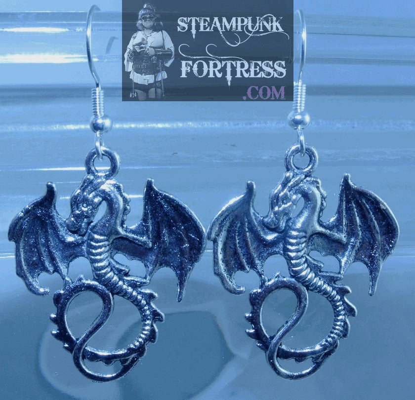 SILVER DRAGONS LARGE PIERCED EARRINGS GAME OF THRONES HOBBIT COSPLAY COSTUME HALLOWEEN STARR WILDE STEAMPUNK FORTRESS