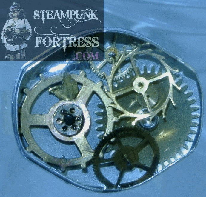 SILVER HEX #8 GOLD GEARS SPARSER POPULATED MINIMALIST AUTHENTIC GENUINE WATCH CLOCK CASE ADJUSTABLE RING STARR WILDE STEAMPUNK FORTRESS